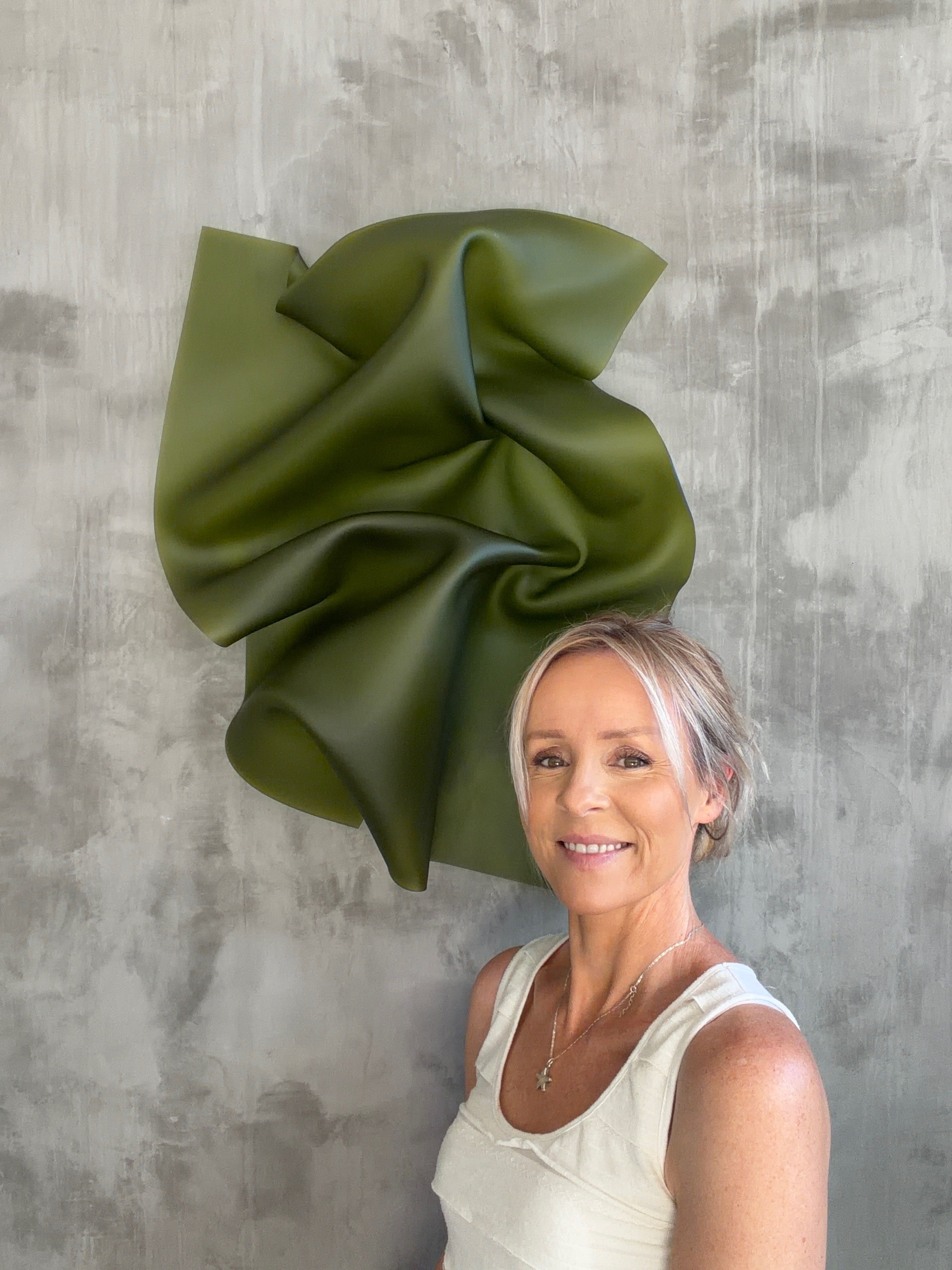 Her work explores movement, emotion, and the balance between softness and structure through sculptural form.